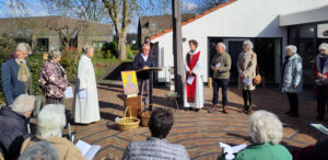 In alle vroegte verzamelde de gemeenschap zich met leden, vrienden en gasten, rond het vuur. We deelden de verhalen van de schepping, van licht en water, van nieuw leven. We zagen uit naar de komst van het Licht, de vreugdevolle boodschap van opstanding en nieuw Leven. We deelden het licht, hernieuwden onze doop en vierden de vreugdevolle maaltijd als opgewekte mensen. Daarna was er koffie, thee en ontbijt. Een feestelijk samenzijn.
